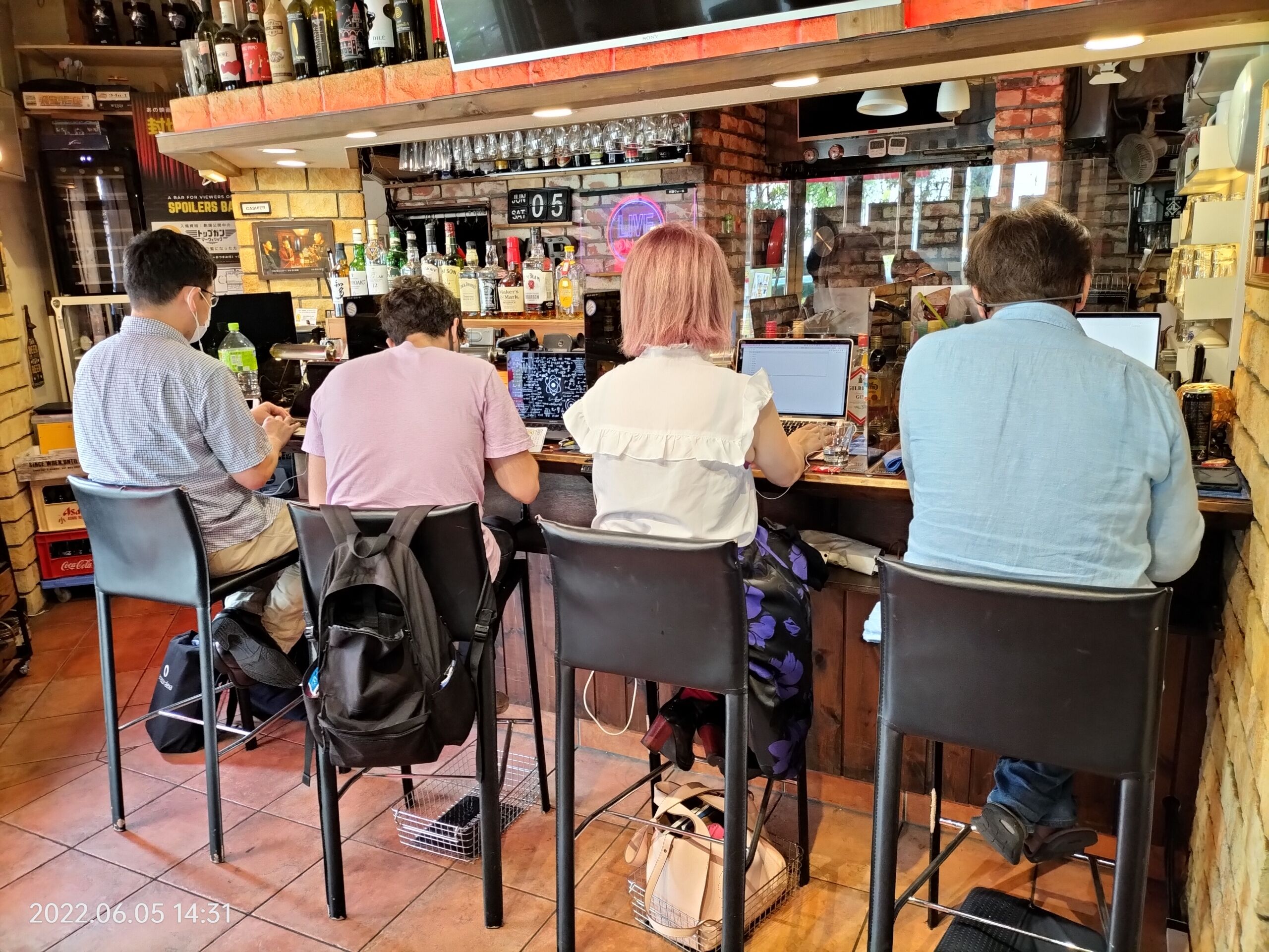 ※ブラックアウトパーティションが設置されたカウンター席(酒瓶を眺めながら執筆できる)