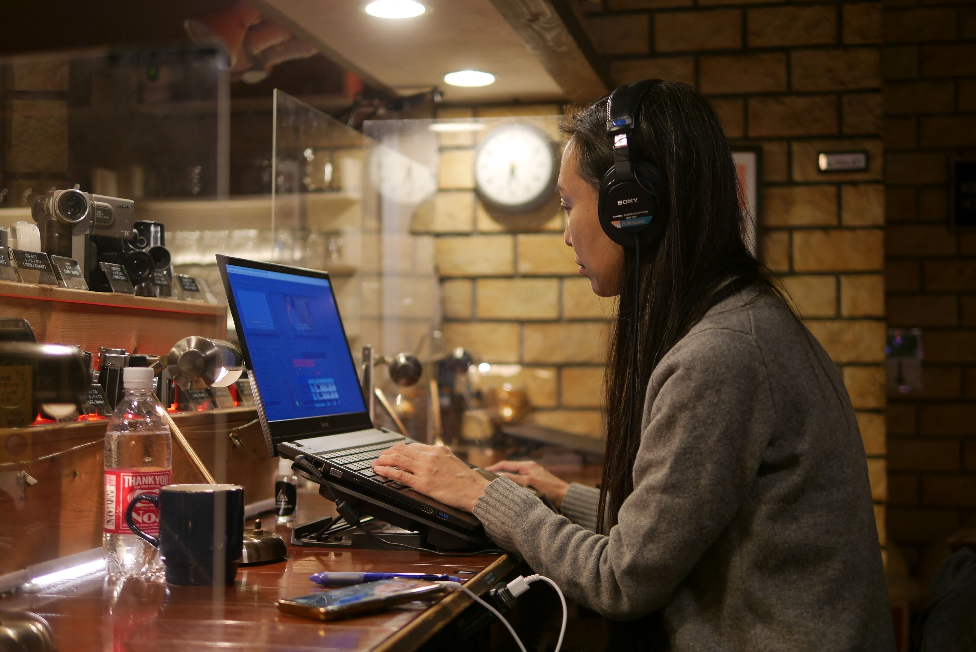 A:店内ではBGMは流れていません。環七を通過するクルマの音や高架を走る中央線の音など適度な街の喧騒が感じられるので原稿執筆は進みやすい音環境になっています。換気のためのキッチン換気扇や各種サーキュレーターの作動音があります。トイレは音姫代わりにラジオをかけています。