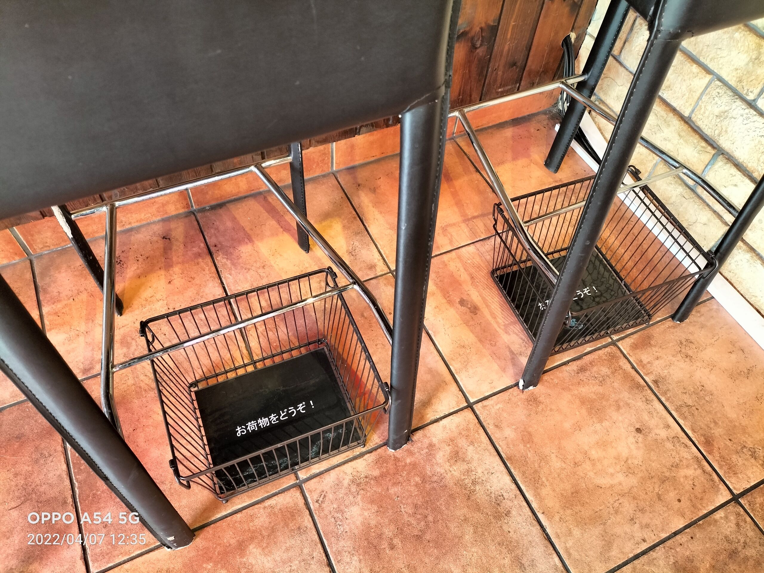 A:足元に座席数分の荷物カゴをご用意してあります。窓際カウンターとテーブル席にはフックもありますのでご利用ください。
