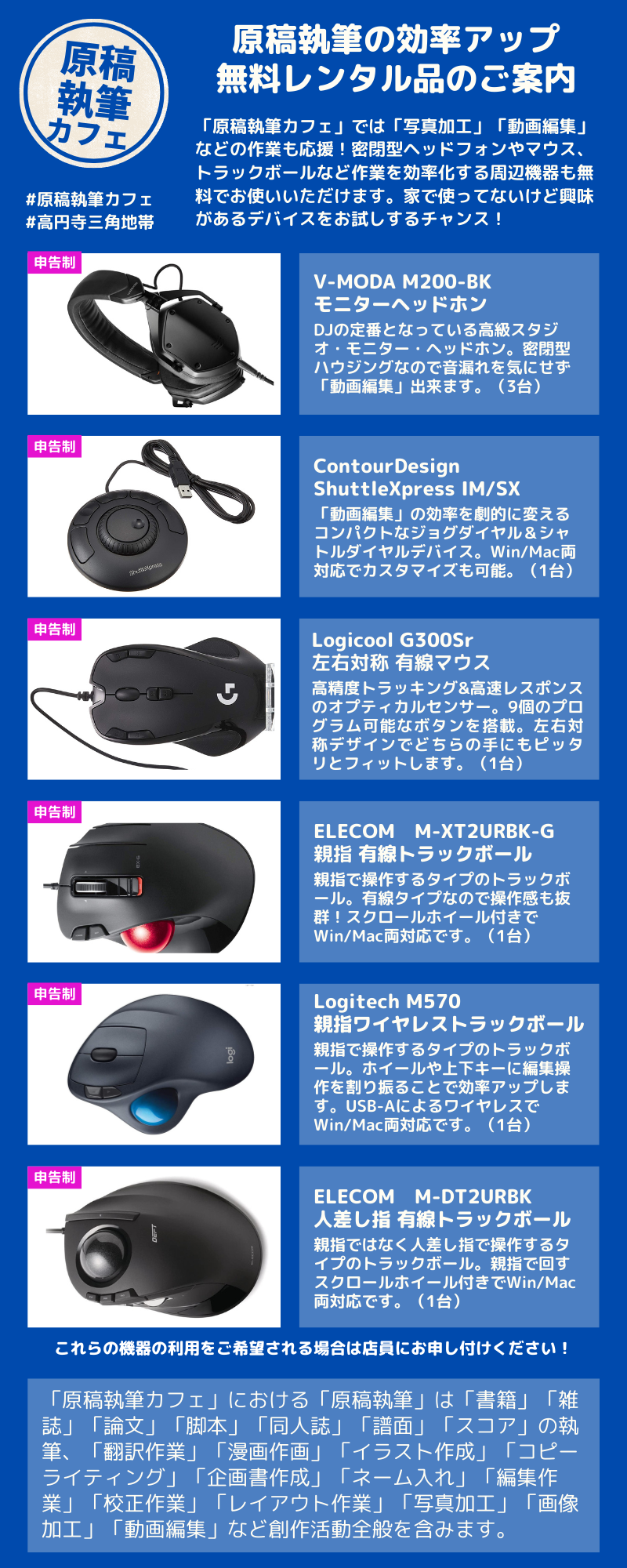 「原稿執筆カフェ」無料レンタル品のご案内