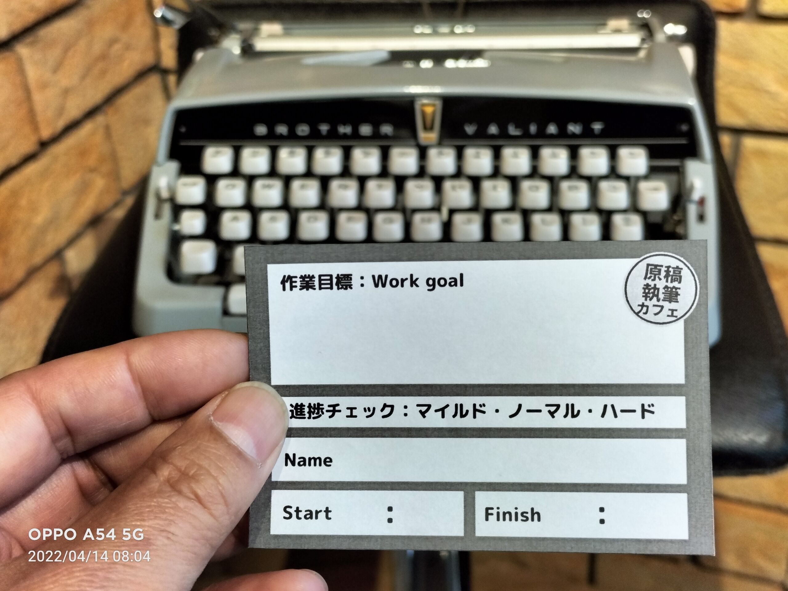 「原稿執筆カフェ」入店時の記入カード。