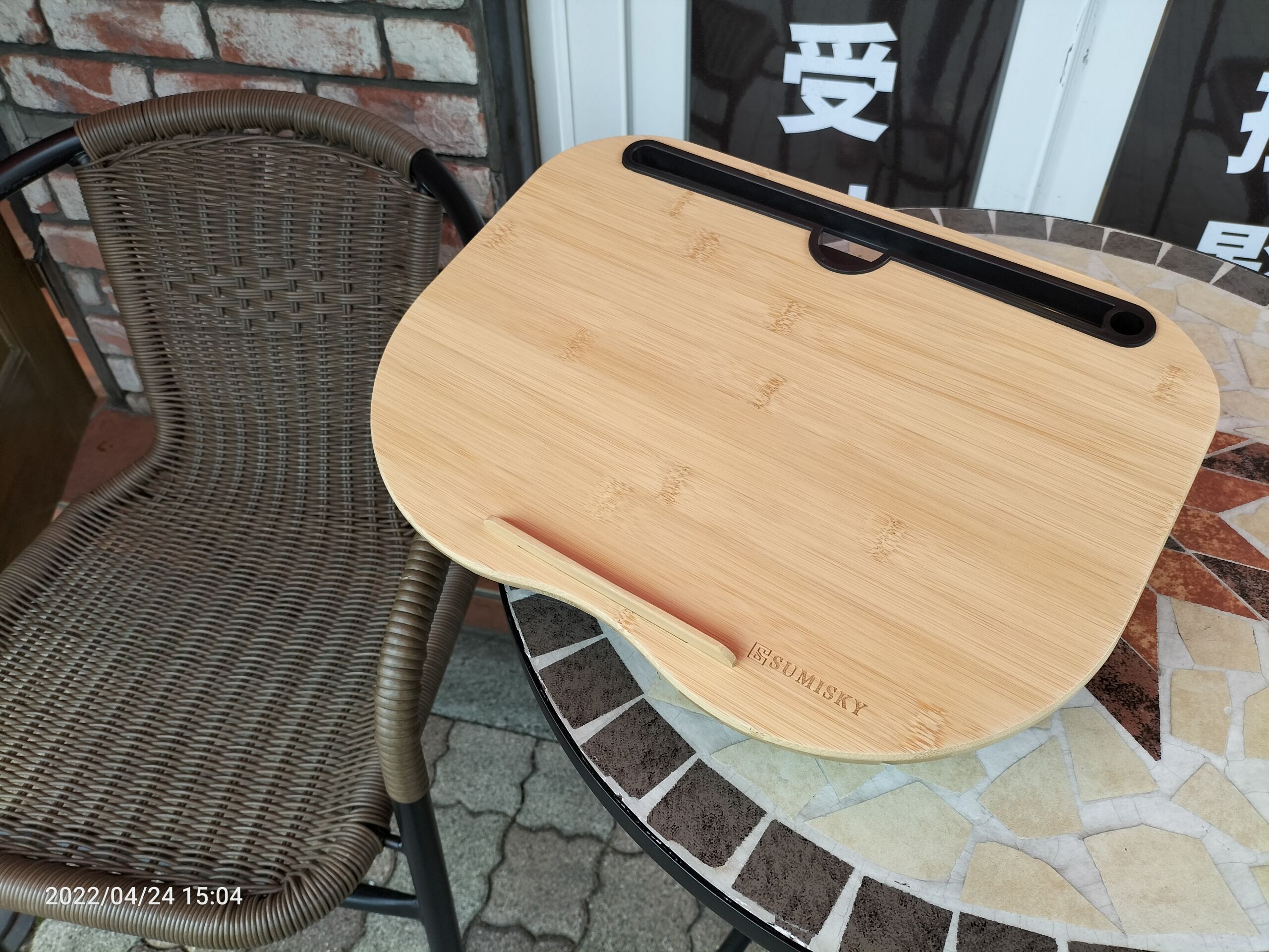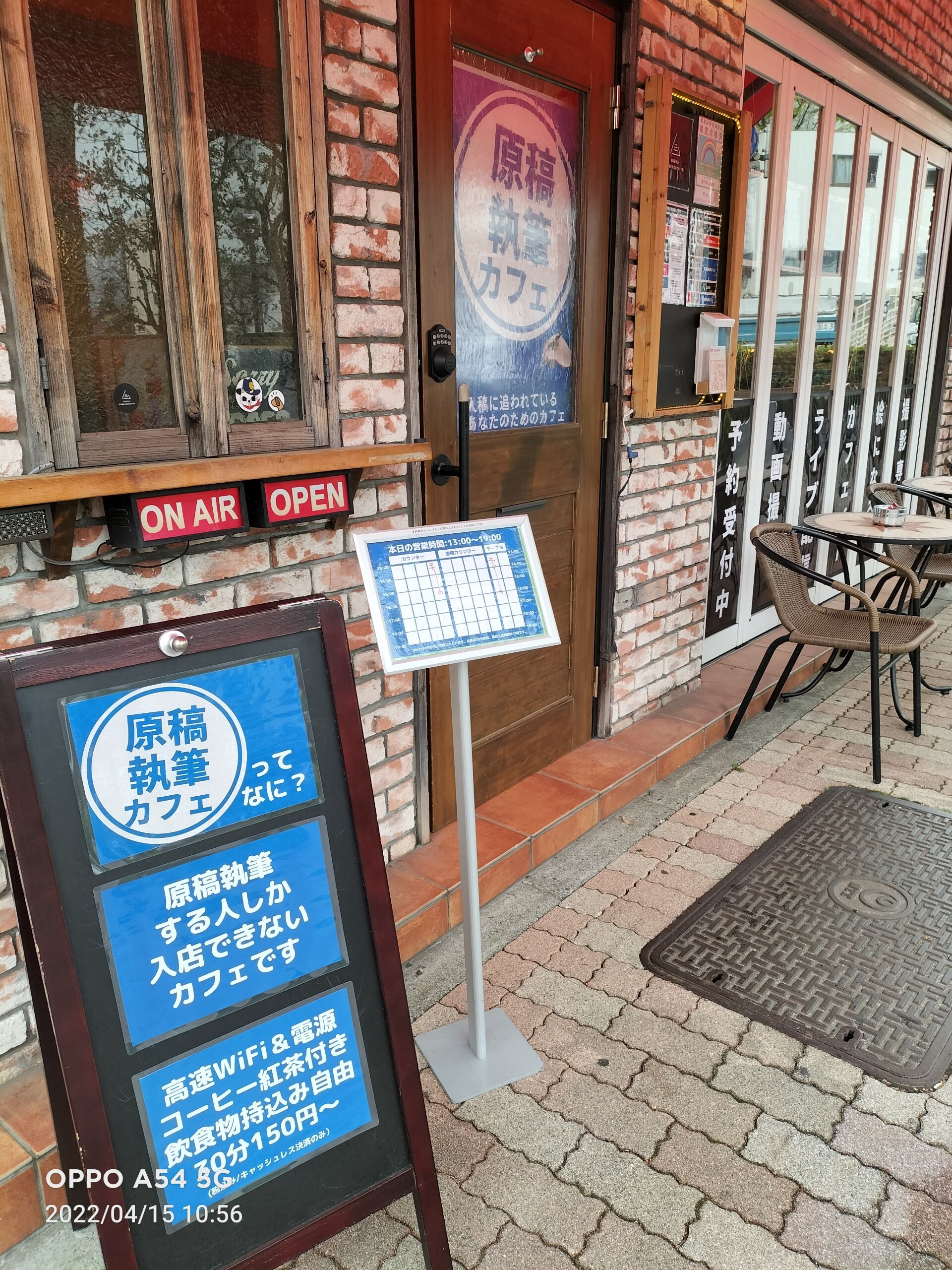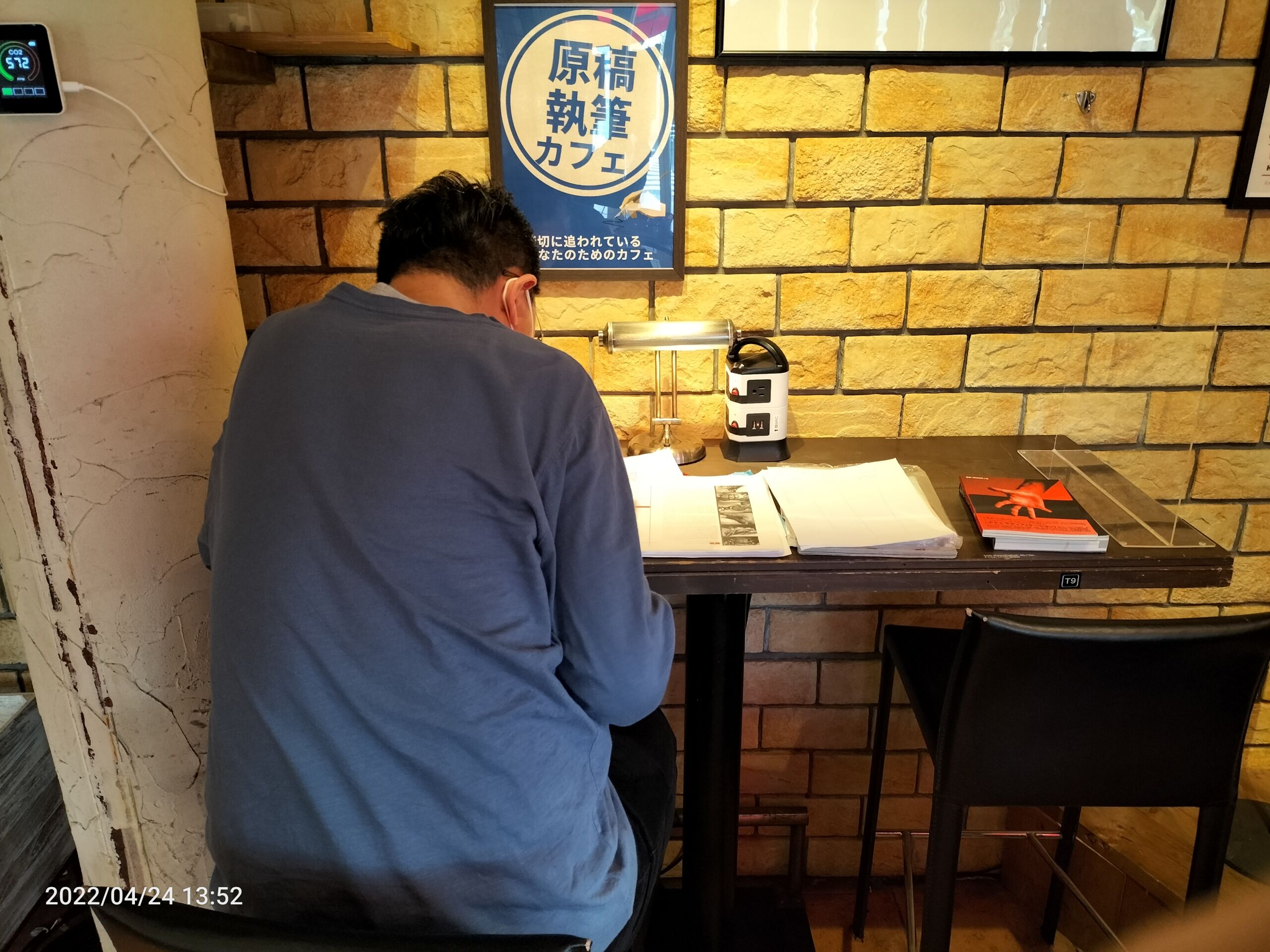 課題:テラス席で道路側に向いたまま快適にパソコンで執筆したい