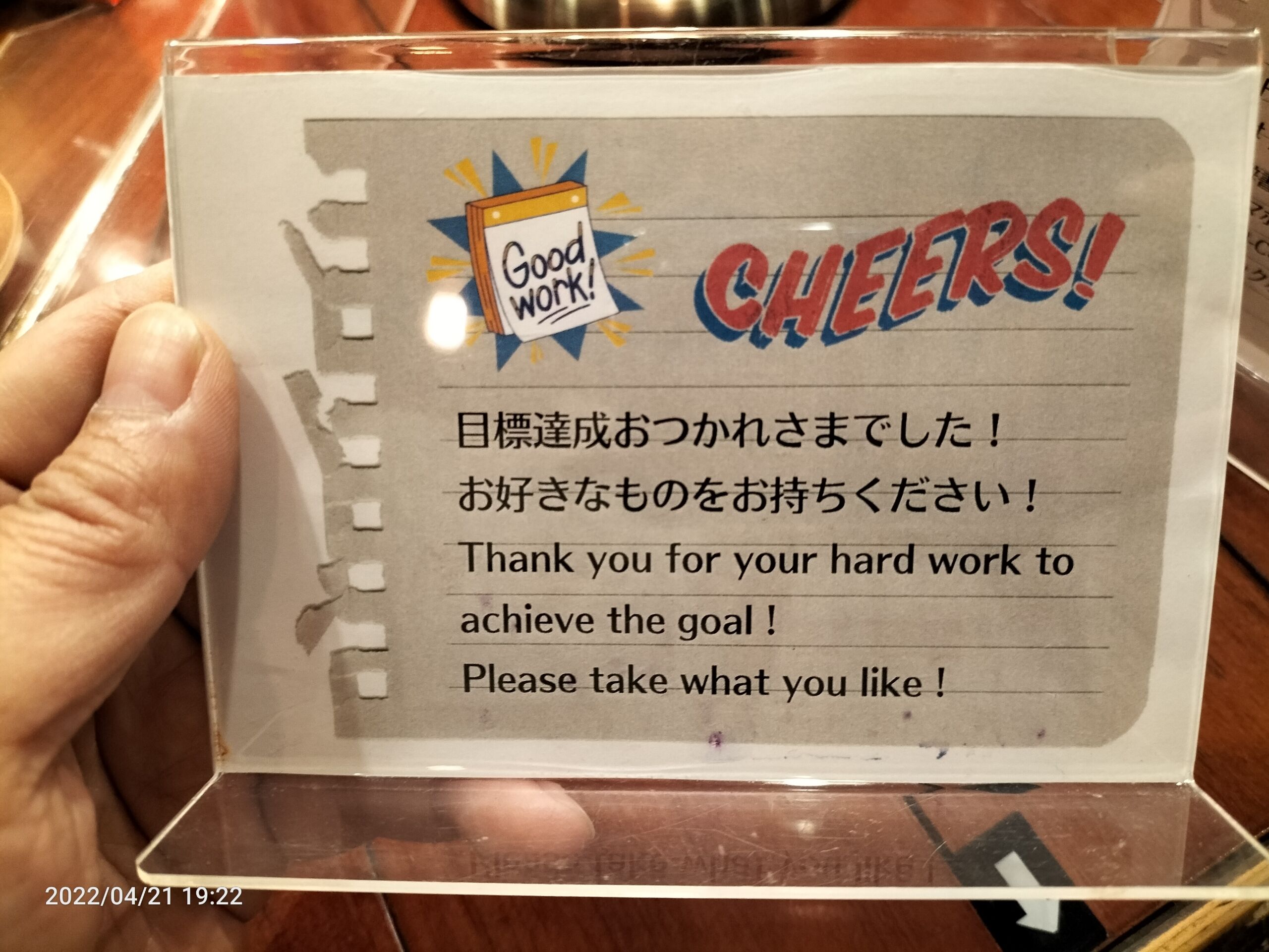 最適化:目標達成した人に向けたねぎらいと再来店の言葉をPOPにして貼る