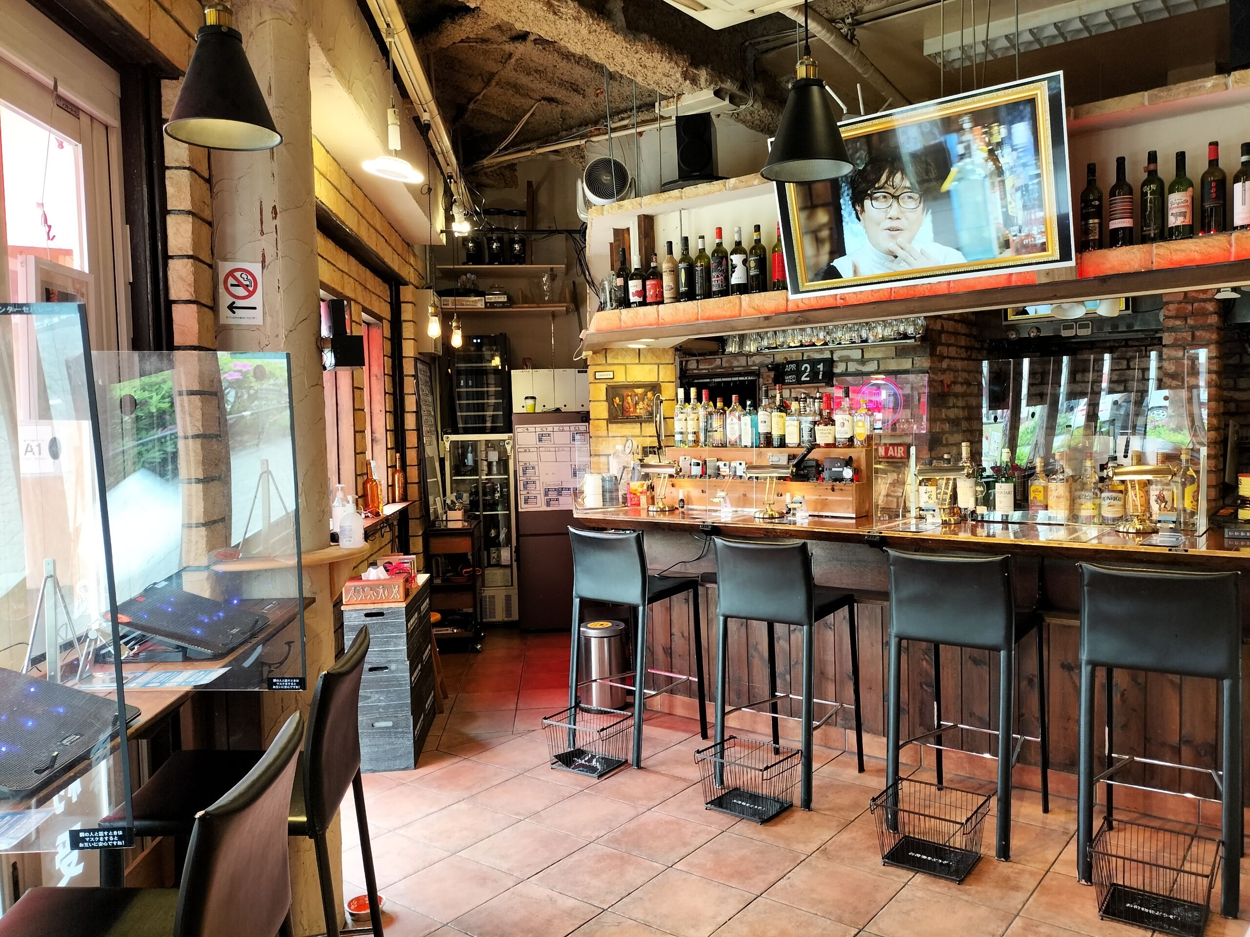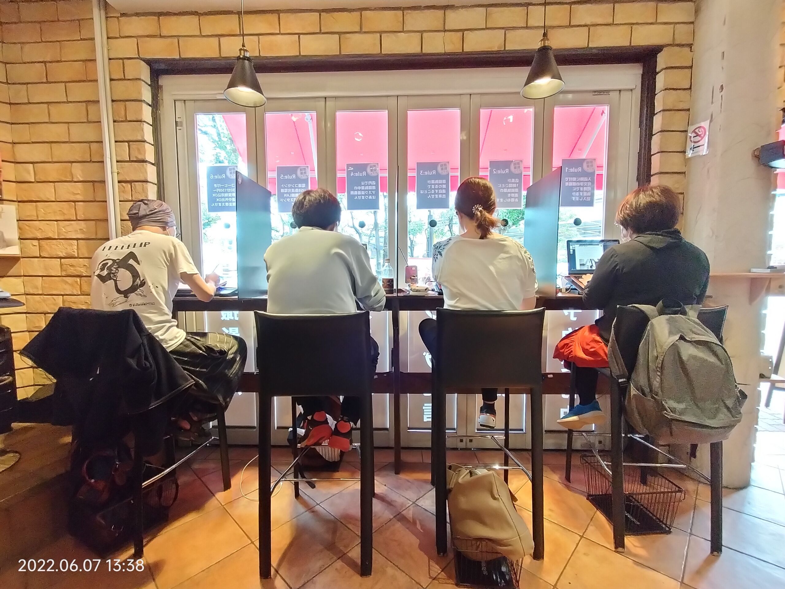 最適化:透明のアクリル板につや消し黒のカッティングシートを貼りブラックアウト化(メディア取材時に引きの絵が撮りにくくなるがかなり報道されたあとなので利用者の居心地を優先とする)