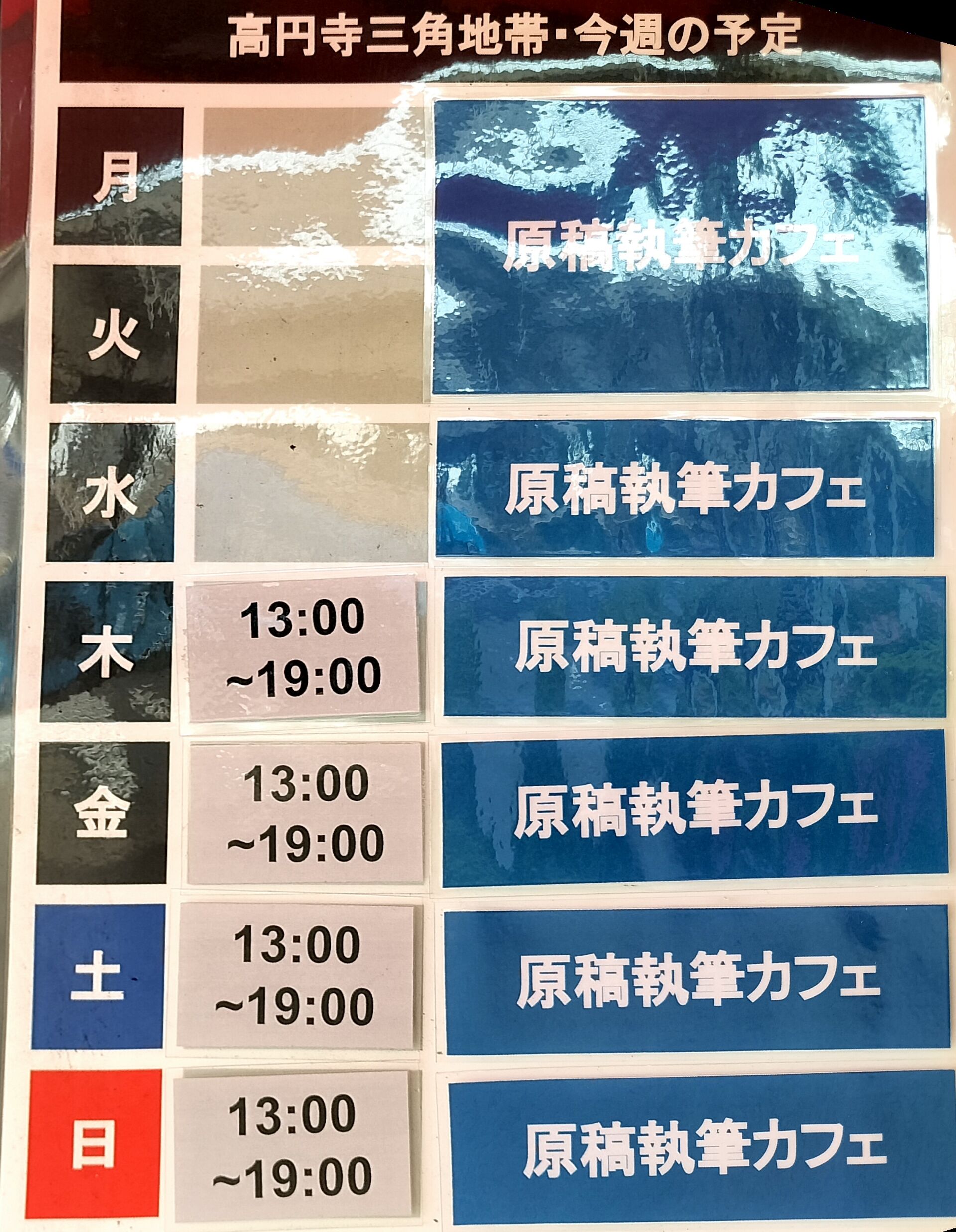 最適化:週間予定表を掲示板に設置しマグネットで営業時間と内容を提示する
