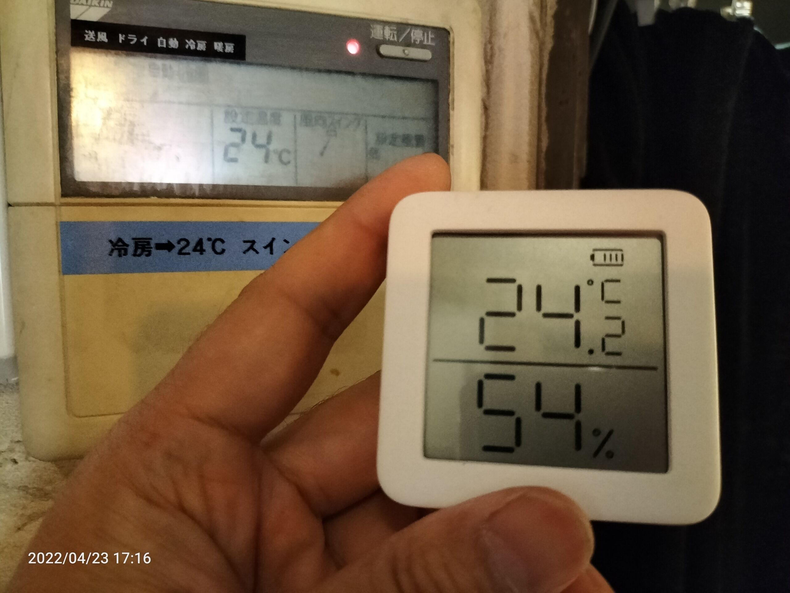 最適化:温度と湿度のスマートメーターを設置し24度を基準としてエアコンと送風をこまめに切り替える