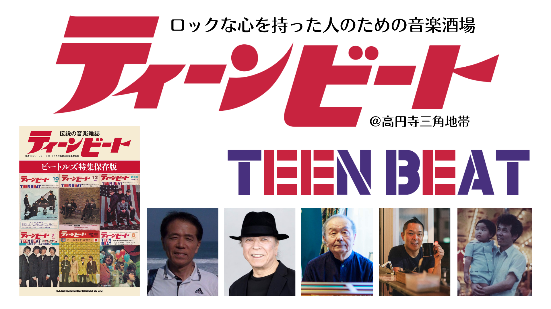 The bar is divided into two parts: event time from 6pm to 8pm and bar time from 8pm to 11pm. During the event time, special guests will be invited to present a talk show in the form of a dialogue. Admission for the event time is 3000 yen. The first admission is free for those who have purchased the special Beatles preservation issue of Teen Beat. If you have already purchased the book from Amazon, etc., please bring the book's obi and it will be free.