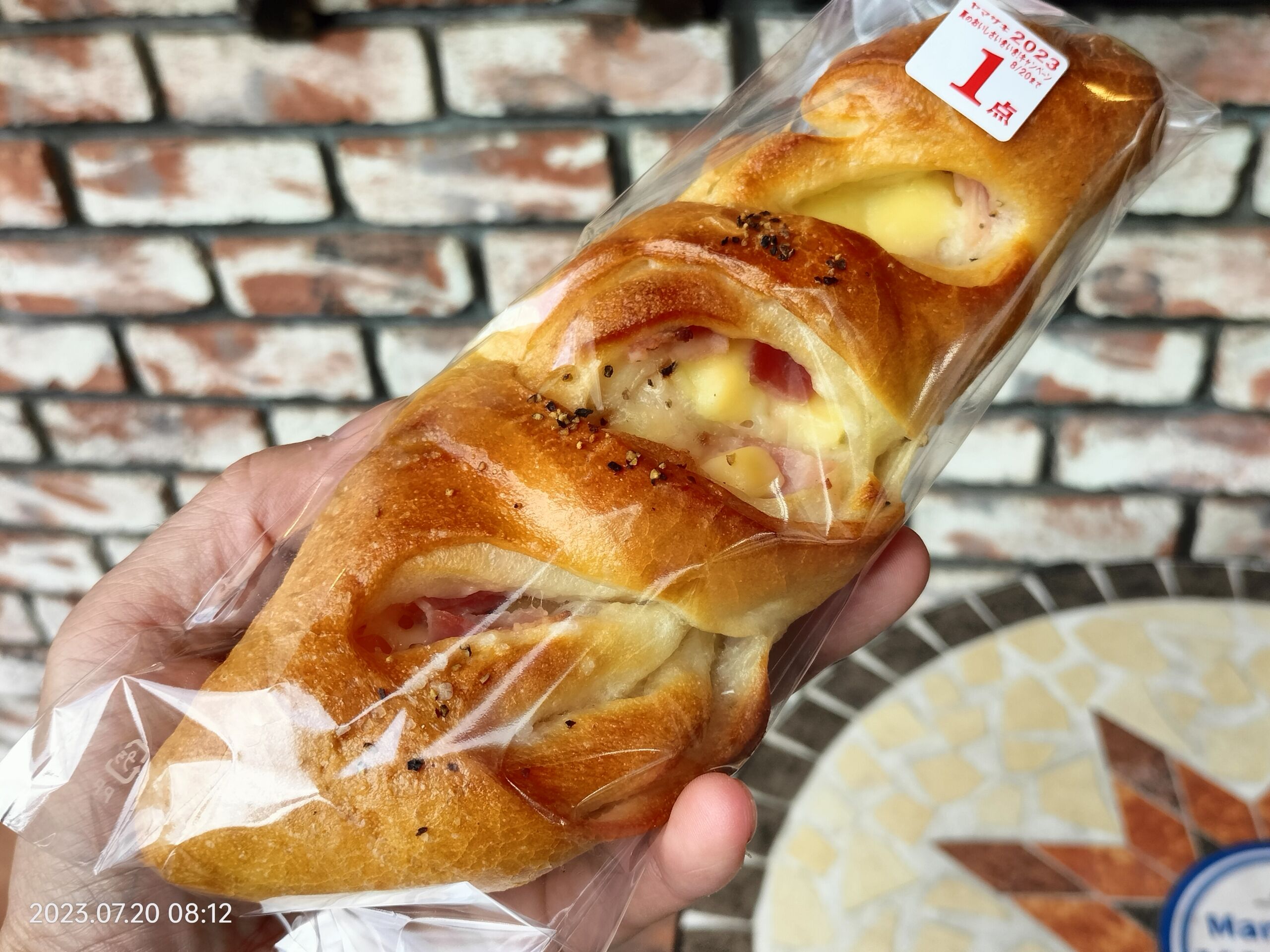 パンは個包装でビニール袋に入っていますが持つとホカホカしているほど焼きたて!このベーコンチーズパンは外がサクサク中はしっとりで美味しいです!