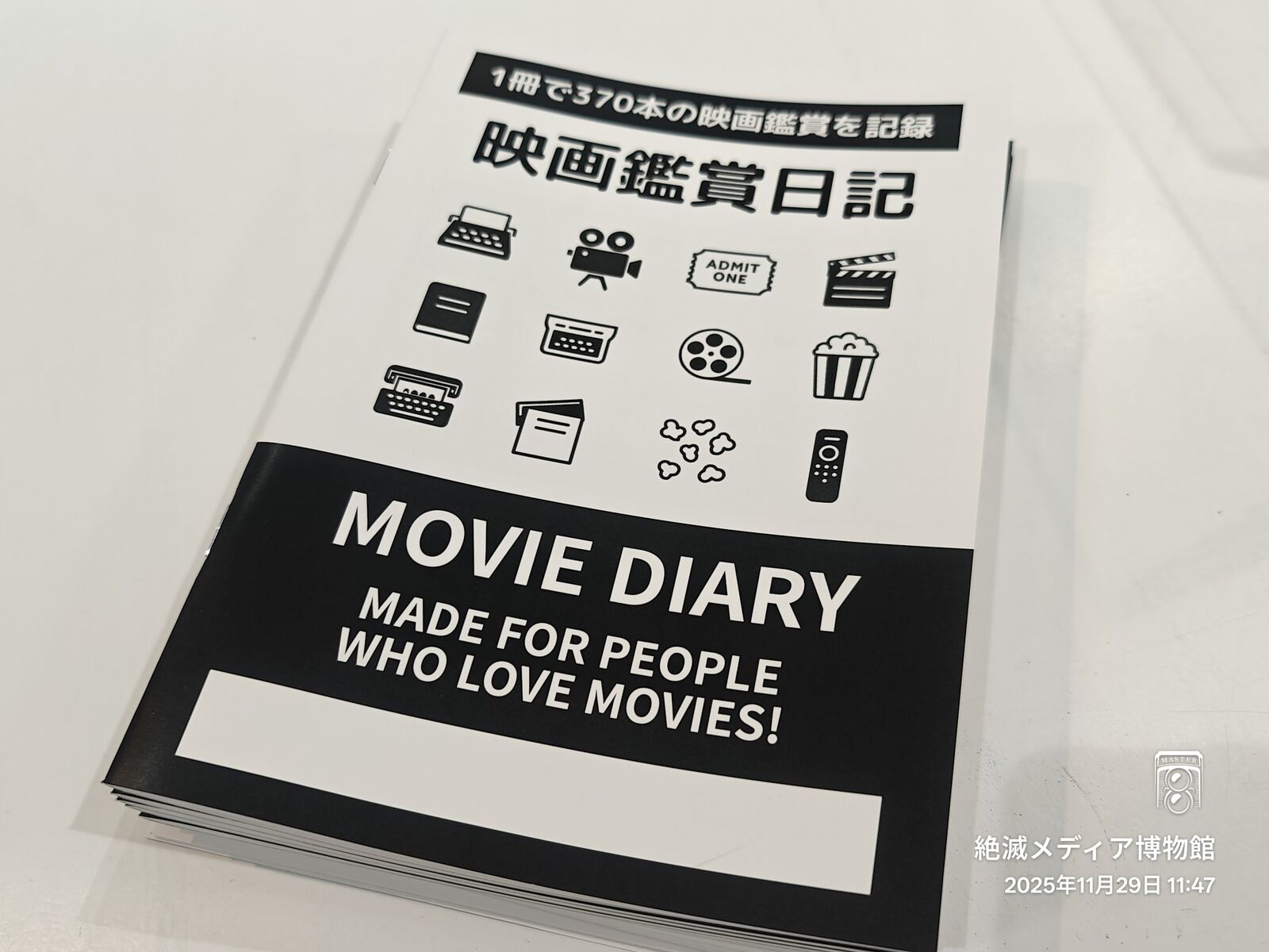 もうひとつは「映画鑑賞日記」です!これは370本の映画鑑賞を記録できる映画ファンのための日記帳です。表紙の下に空白は「2026年」とか「劇場で観た映画日記」「配信で観た映画」など利用者が好きな名前を書き込めるようになっています。