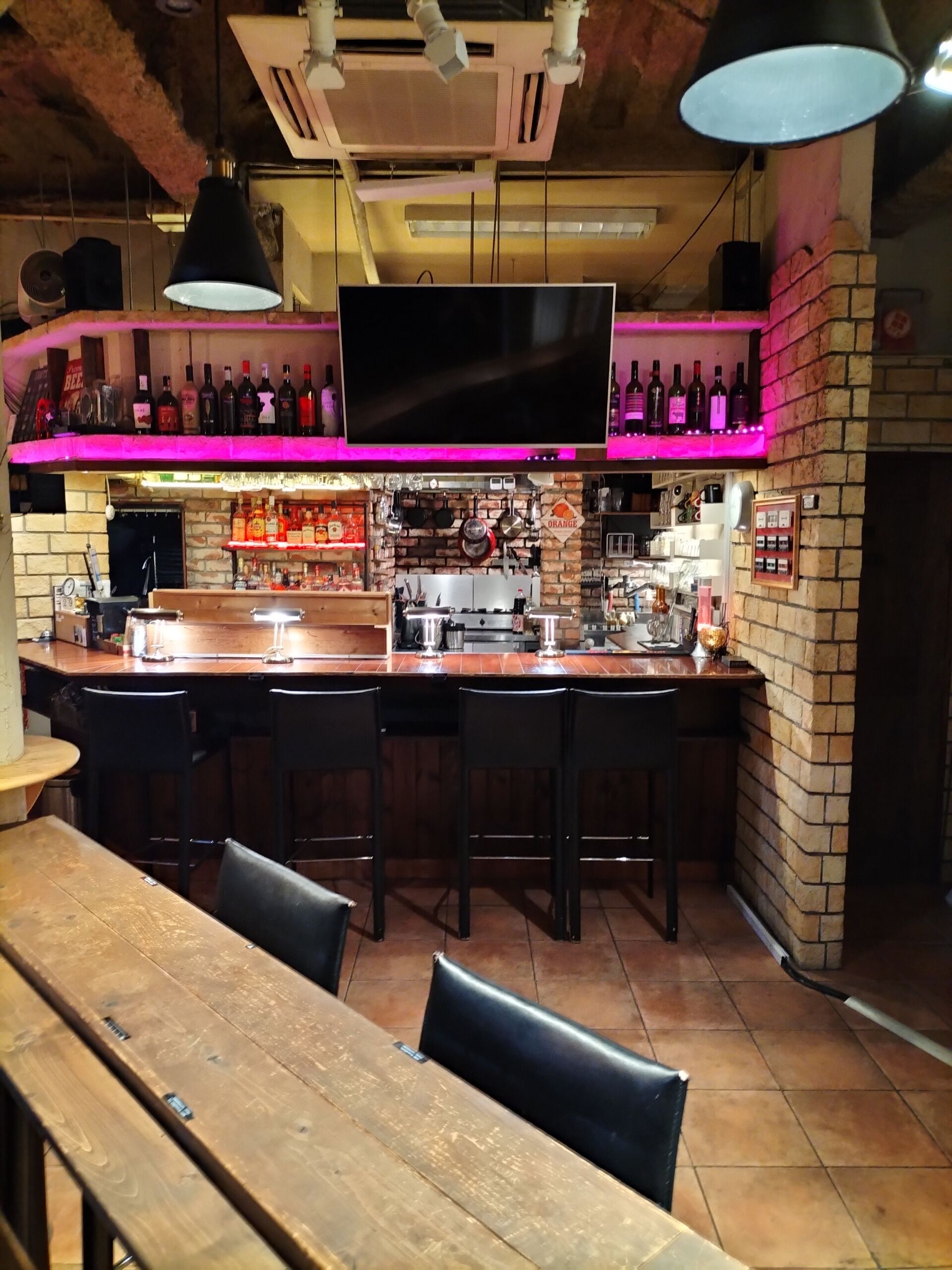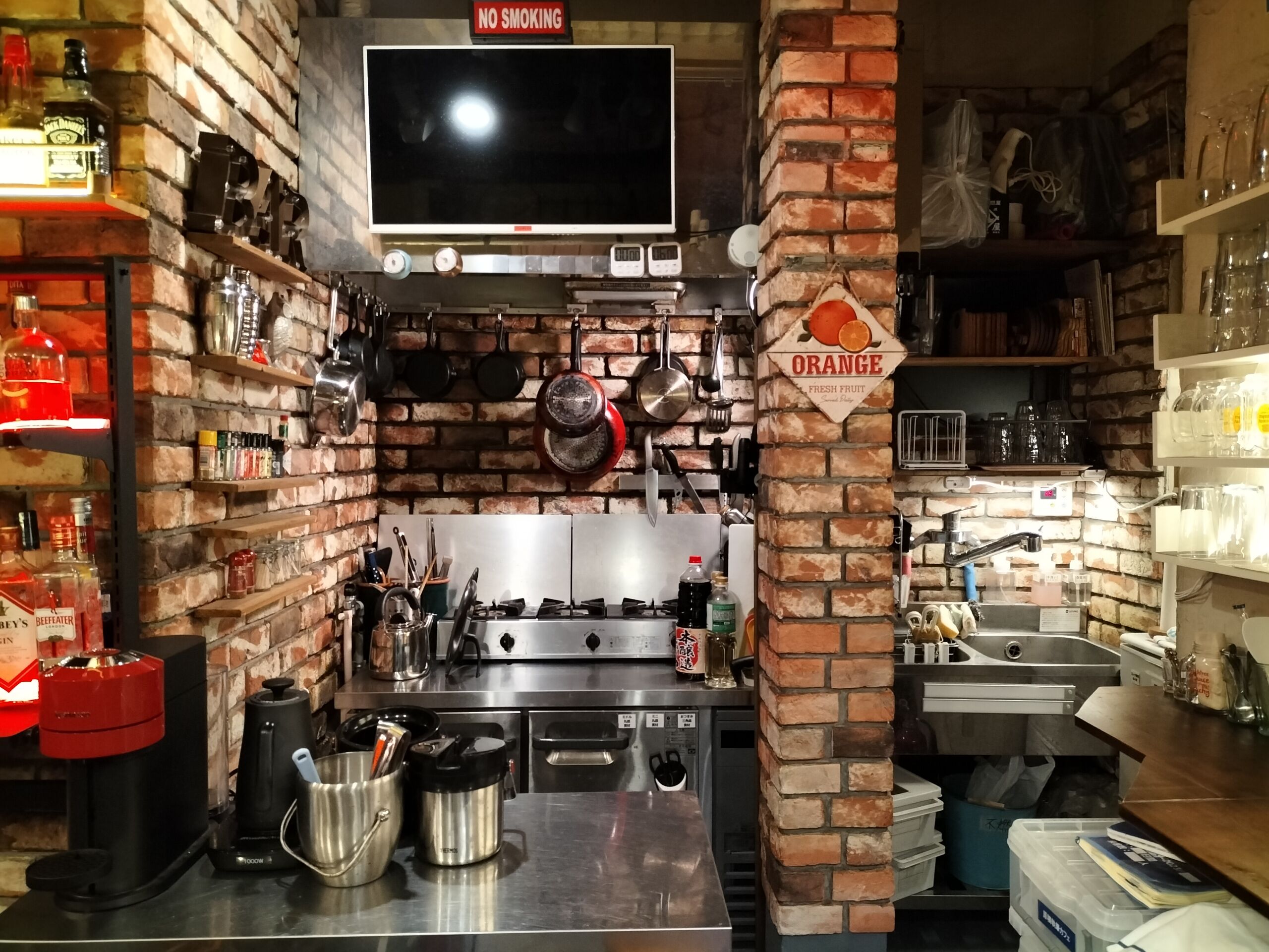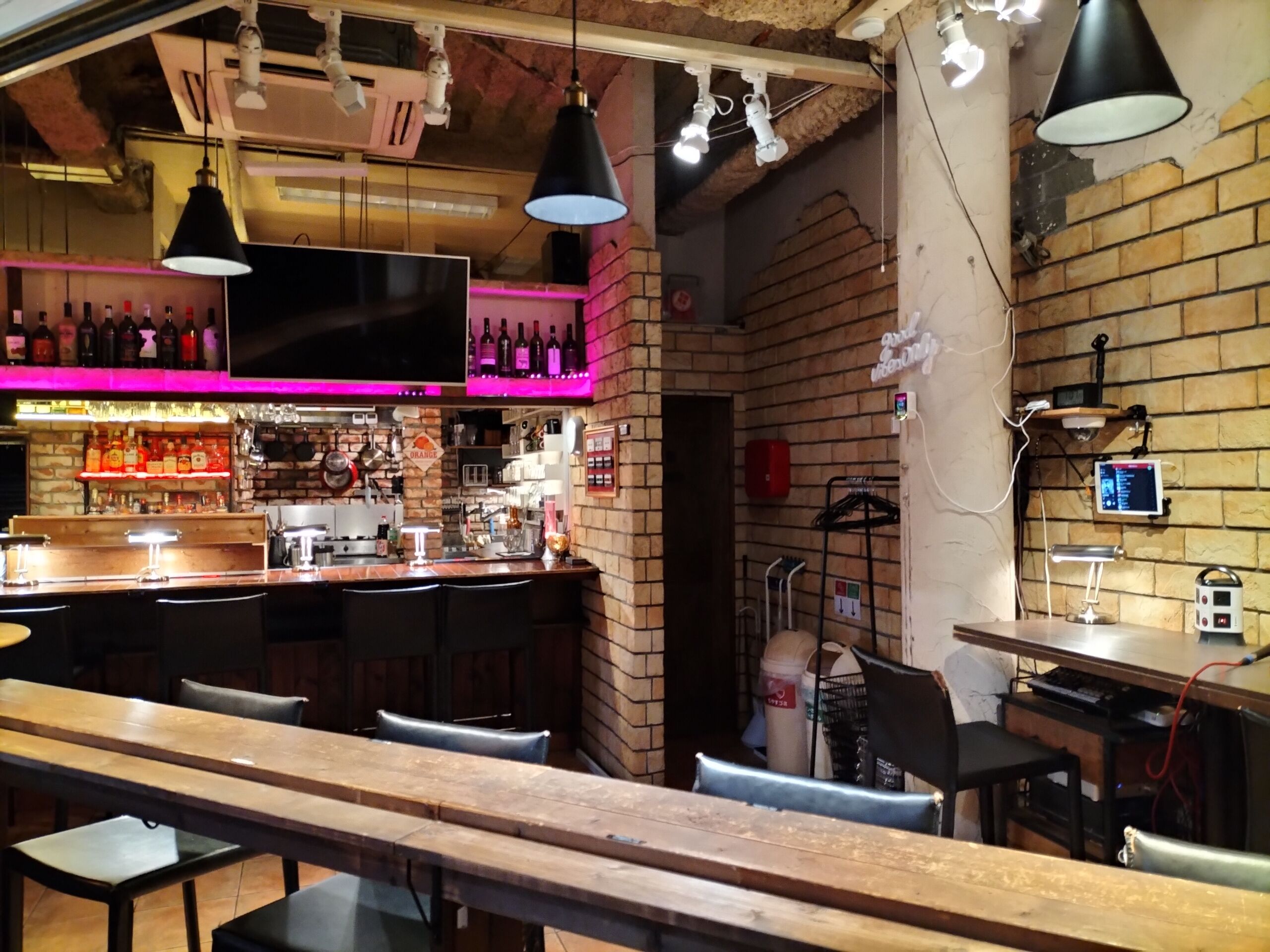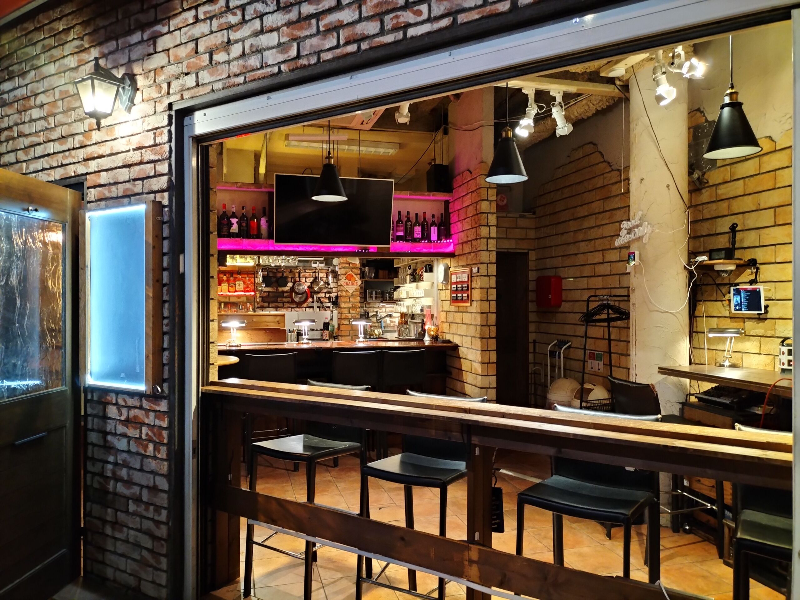 「高円寺三角地帯」は居抜きのイタリアンバーをそのまま活用したライブ配信&撮影スタジオです。三角形の独特な敷地ですが、高い天井高とワイドオープンの折りたたみ窓により日中は南東からの光がフロア全体に差し込みます。壁はすべてレンガでカウンターの質感も高くどこを切り取っても絵になります。