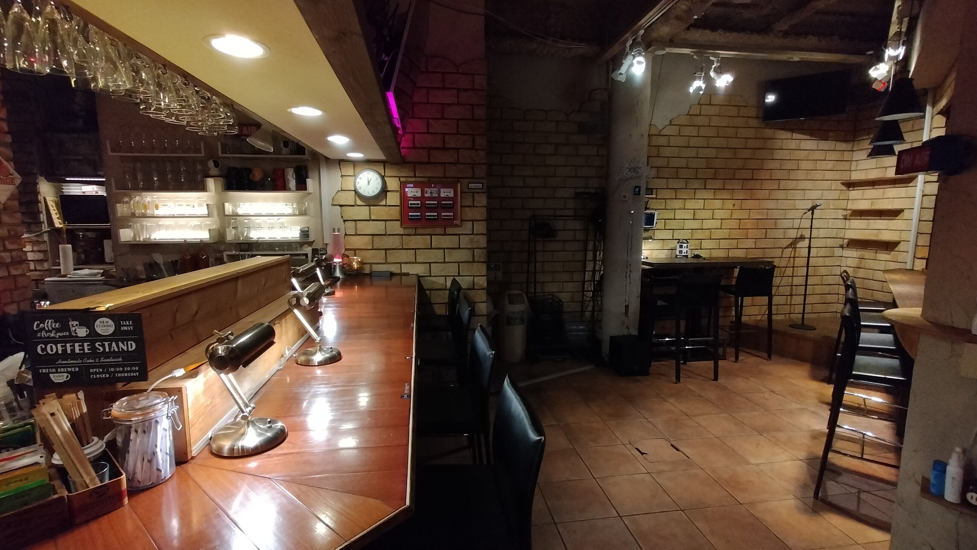 フロア面積は38㎡(11坪)で標準的なレイアウトでは着席で15席のキャパシティです。三角形の頂点には世界一小さなステージ「デルタステージ」があり落語やオープンマイク、ミニライブ、スタンダップコメディなどに使えます。